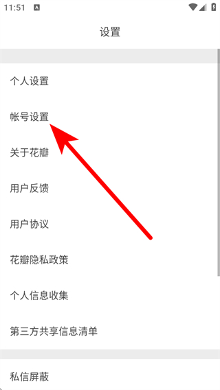 3、在設(shè)置頁(yè)面,點(diǎn)擊帳號(hào)設(shè)置選項(xiàng)。