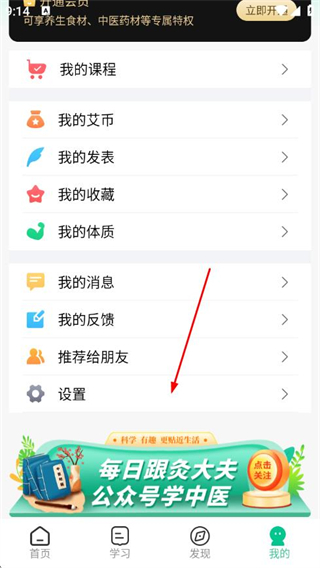 1、打開(kāi)灸大夫app,點(diǎn)擊底部導(dǎo)航欄中的學(xué)習(xí)選項(xiàng)。