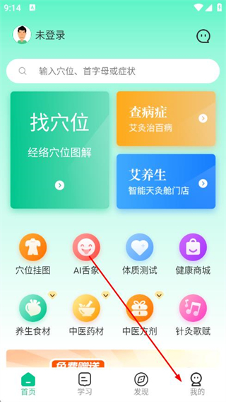 1、打開(kāi)灸大夫APP,點(diǎn)擊底部導(dǎo)航欄我的選項(xiàng)。