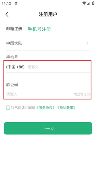 3、勾選已閱讀并同意服務(wù)協(xié)議和隱私政策,點擊下一步。