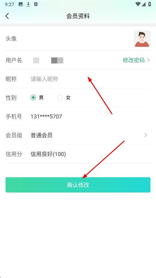 3、在會員資料頁面,輸入新的昵稱,點擊確認修改,完成用戶名更改。