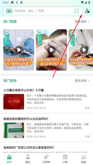 1、打開兔靈醫(yī)藥APP,點擊首頁右上角的個人中心圖標。