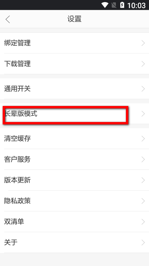 3、在設(shè)置頁面,點擊長輩版模式選項,進(jìn)入長輩版模式說明頁面。