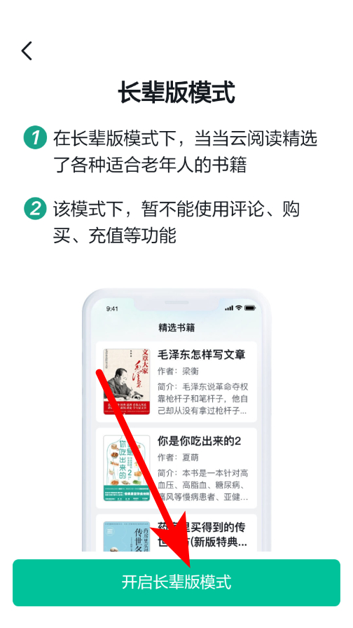 4、在長輩版模式說明頁面,點擊開啟長輩版模式按鈕,即可開啟長輩模式。