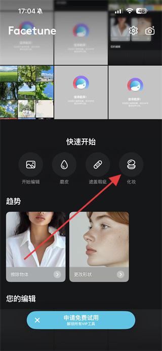 1、打開Facetune應(yīng)用,點(diǎn)擊化妝選項(xiàng)進(jìn)入圖片庫(kù)選擇界面。