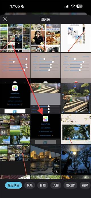 2、在圖片庫(kù)中,挑選一張需要修圖的照片并點(diǎn)擊導(dǎo)入。