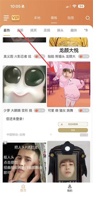 2、在模板頁(yè)面,選擇喜歡的模板類(lèi)型,如最新、搞笑、換頭等,挑選心儀的模板。