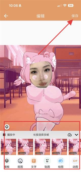 3、選擇模板后,進(jìn)入編輯頁(yè)面,可對(duì)模板進(jìn)行摳圖、添加文字、貼圖、繪圖、動(dòng)圖等編輯操作。