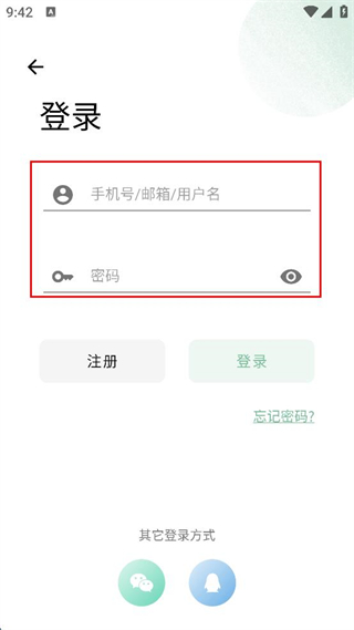 3、在登錄頁(yè)面輸入手機(jī)號(hào)/郵箱/用戶名和密碼。