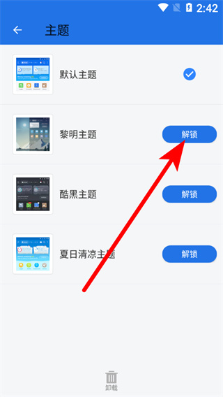 3、在主題設(shè)置頁(yè)面,選擇目標(biāo)主題后點(diǎn)擊解鎖按鈕,進(jìn)入解鎖確認(rèn)界面。