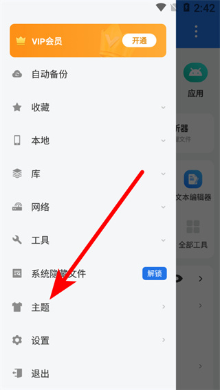 2、在功能列表中,點(diǎn)擊主題選項(xiàng),進(jìn)入主題設(shè)置頁(yè)面。