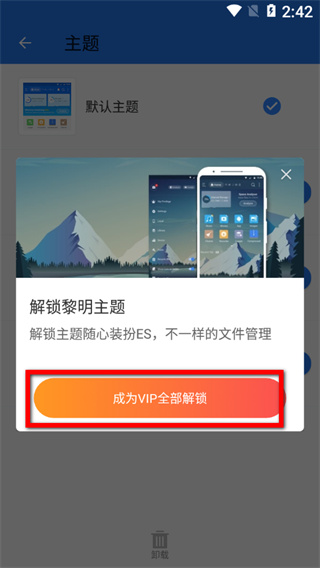 4、在解鎖確認(rèn)界面,點(diǎn)擊成為VIP全部解鎖按鈕,即可完成主題更換操作。