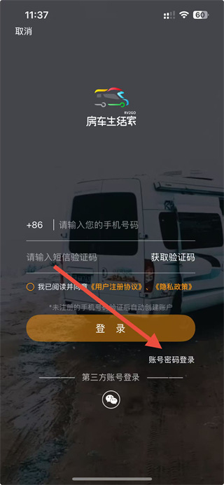 2、在登錄頁面點(diǎn)擊賬號密碼登錄選項(xiàng),切換到密碼登錄模式。