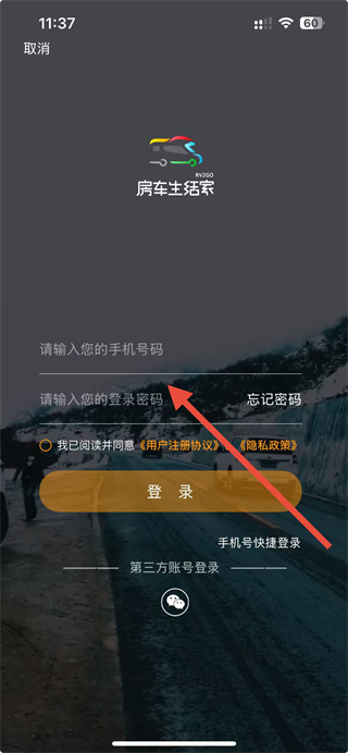 3、在密碼登錄頁面輸入手機(jī)號和密碼。