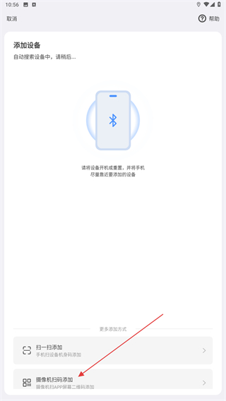 2、進入添加設(shè)備的界面內(nèi),點擊下方攝像機掃碼添加的按鈕。