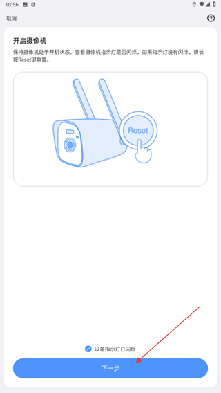 3、進入開啟攝像機的頁面內(nèi),勾選后點擊下一步的按鈕。