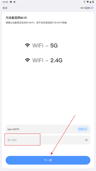 4、在該頁面內(nèi),輸入密碼后再點擊下一步即可添加成功。