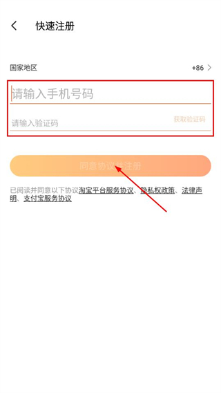 4、輸入手機(jī)號碼和驗證碼,勾選協(xié)議,點擊同意協(xié)議并注冊。