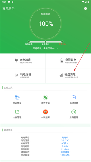 2、進(jìn)入到首頁(yè)內(nèi),點(diǎn)擊磁盤(pán)清理的功能按鈕。