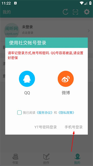 2、在我的頁面點擊未登錄,彈出使用社交帳號登錄窗口。