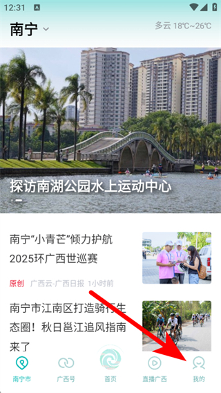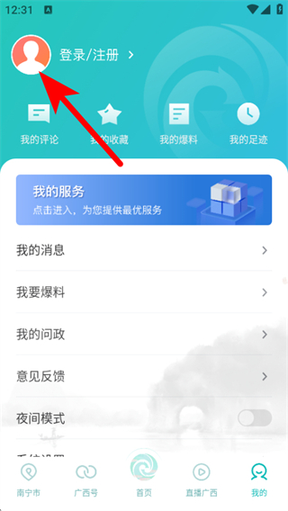 1、打開廣西云app,我們在首頁點擊底部我的,進入個人的頁面。