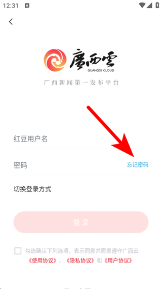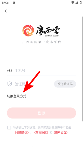 3、在廣西云登錄的界面,我們需要點擊切換登錄的方式。