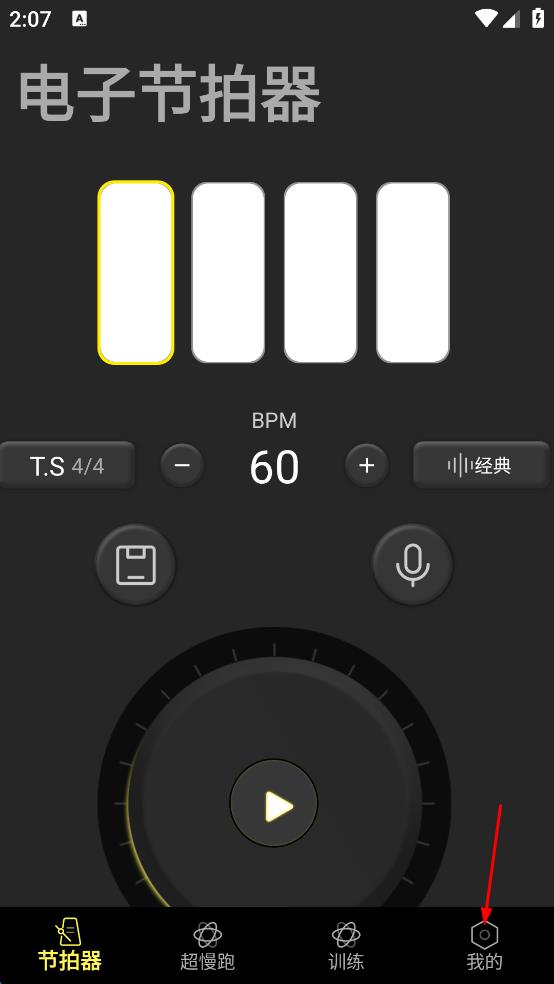 1、打開電子節(jié)拍器,點(diǎn)擊頁(yè)面右下角“我的”,進(jìn)入個(gè)人頁(yè)面。