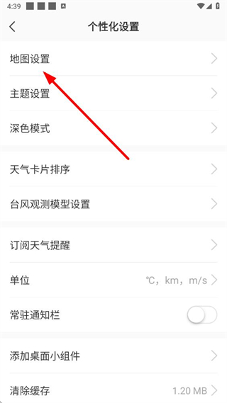 3、在個性化設置頁面點擊地圖設置選項,進入地圖設置頁面。