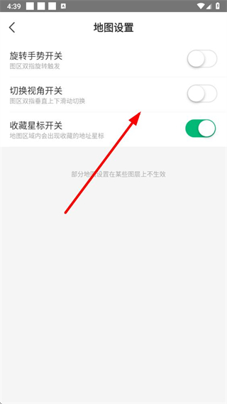4、在地圖設置頁面可對旋轉手勢開關、切換視角開關、收藏星標開關等進行設置,按需調(diào)整即可完成地圖設置操作。