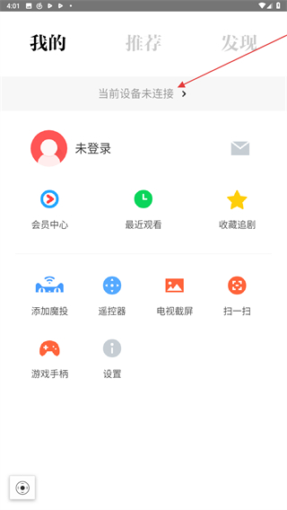 2、進(jìn)入我的頁面內(nèi),點(diǎn)擊當(dāng)前設(shè)備未連接的區(qū)域位置。