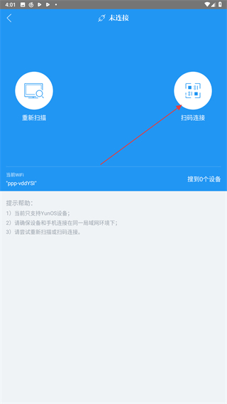 3、進(jìn)入連接的頁面內(nèi),進(jìn)擊右側(cè)掃碼連接的功能按鈕。
