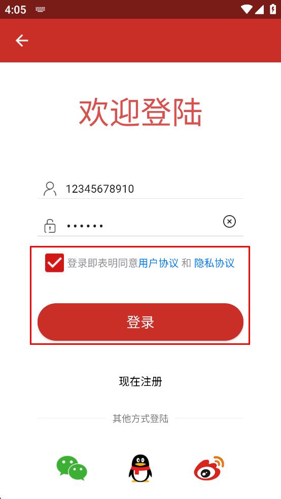 4、勾選登錄即表明同意用戶協(xié)議和隱私協(xié)議點(diǎn)擊登錄,即可完成登錄流程。