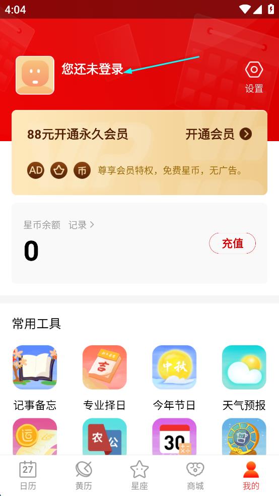 2、在我的頁面點(diǎn)擊您還未登錄。