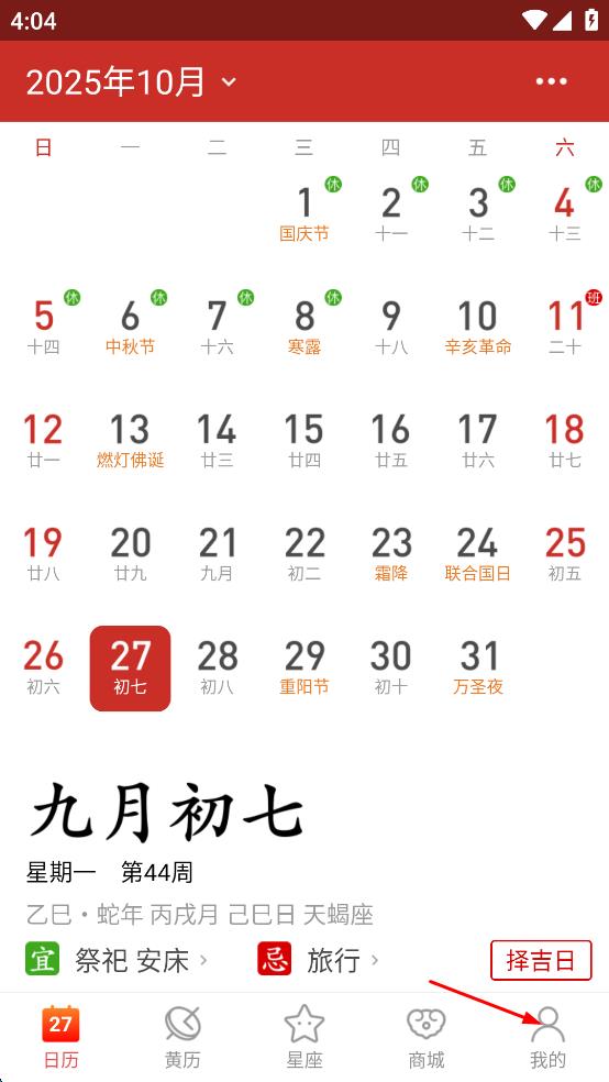 1、打開日歷類APP,點(diǎn)擊首頁右下角我的。