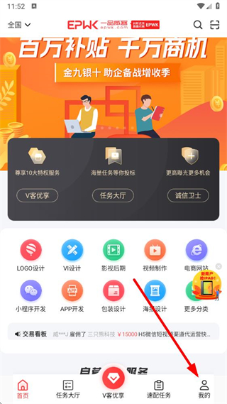 1、在一品接單app界面點(diǎn)擊我的選項(xiàng),進(jìn)入個(gè)人頁(yè)面。