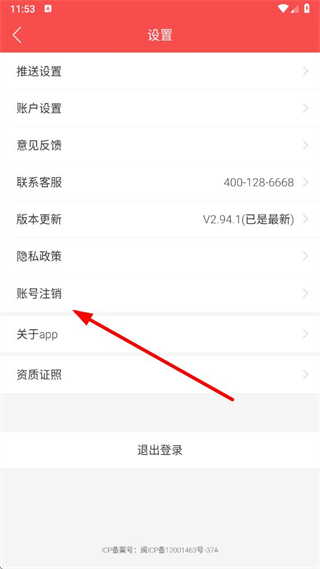 3、在設(shè)置頁(yè)面點(diǎn)擊賬號(hào)注銷選項(xiàng),彈出注銷賬號(hào)確認(rèn)框。