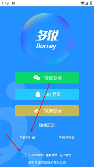 3、在登錄注冊頁面,勾選隱私政策和用戶協(xié)議,點擊手機注冊選項。