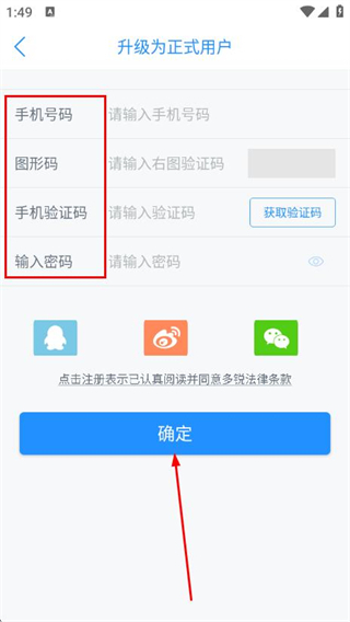 4、輸入手機號碼、圖形碼、驗證碼,設(shè)置密碼,點擊確定完成注冊。