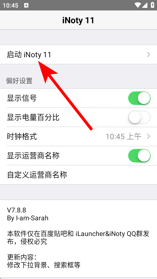 2、在iNoty11設(shè)置界面,點擊啟動iNoty11選項,進(jìn)入啟動設(shè)置頁面。