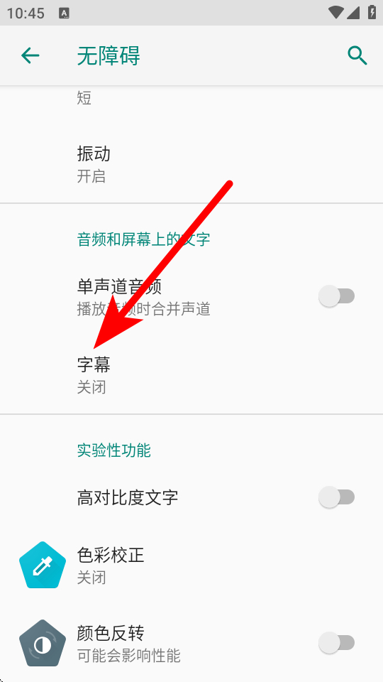 4、在無障礙設(shè)置界面,找到字幕選項,將其開關(guān)開啟,完成字幕打開操作。