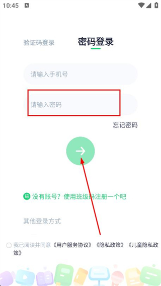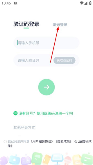 1、打開愛學(xué)習(xí)app,點擊上方密碼登錄選項。