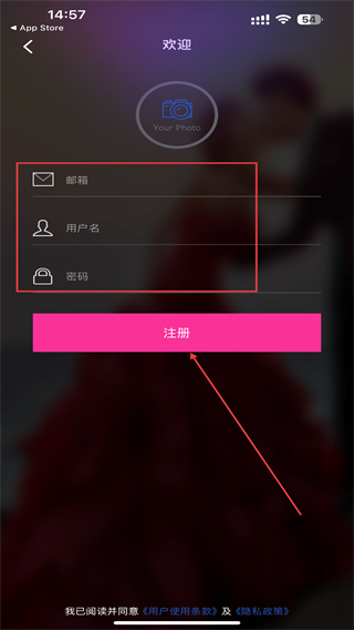3、輸入郵箱、用戶名以及密碼后,再點(diǎn)擊注冊(cè)按鈕即可。