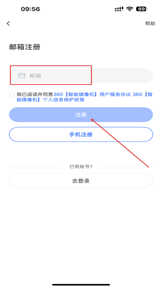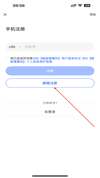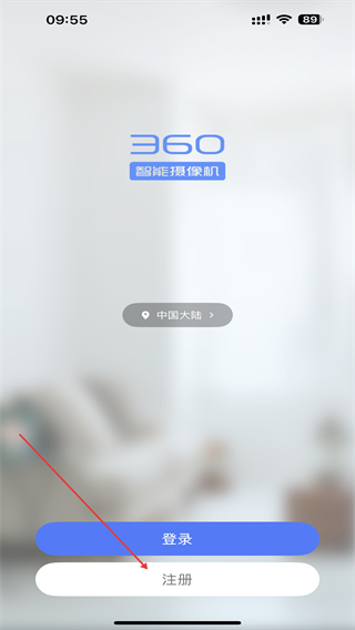 1、打開360智能攝像機(jī)的APP,進(jìn)入時(shí)點(diǎn)擊注冊(cè)的按鈕。