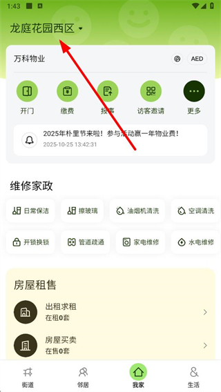 2、在房屋管理頁(yè)面點(diǎn)擊小區(qū)名稱(chēng),進(jìn)入選擇地址頁(yè)面。