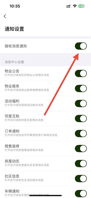 4、在通知設(shè)置頁(yè)面,點(diǎn)擊接收消息通知右側(cè)的開(kāi)關(guān),將其關(guān)閉即可。