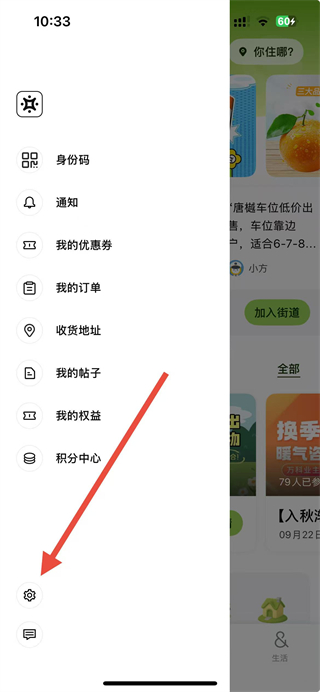 2、在個(gè)人菜單頁(yè)面中,點(diǎn)擊設(shè)置圖標(biāo)進(jìn)入設(shè)置頁(yè)面。