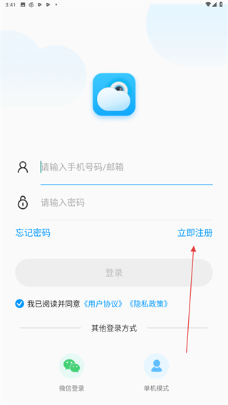 1、啟動喬安智聯(lián)監(jiān)控APP,進入時點擊右側(cè)立即注冊的按鈕。