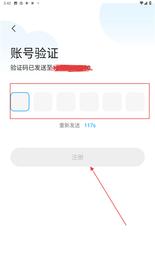 3、在賬號驗證的界面內(nèi),輸入驗證碼后再點擊注冊按鈕即可。