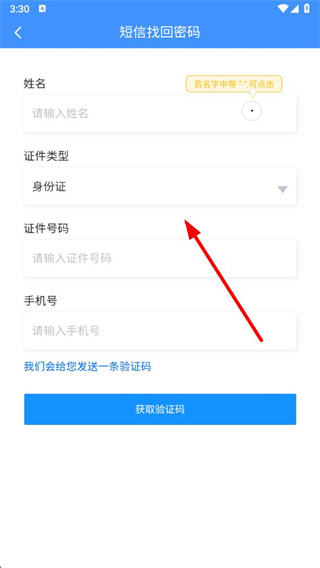 3、若選短信找回密碼,輸入個人信息,獲取驗證碼,按提示完成密碼重置。