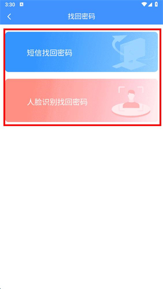 2、在找回密碼頁面選擇短信找回密碼或人臉識別找回密碼方式。